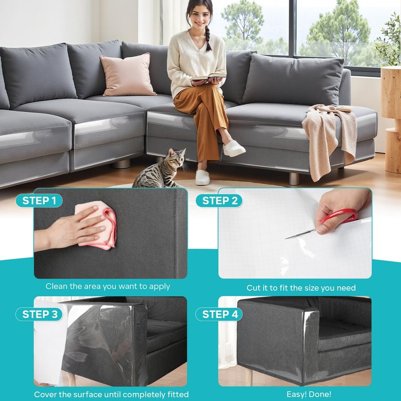 - ✅ PERFECT FIT FOR ANY CORNER: One roll protects large areas (200"x 12.4")! Easily trim this versatile couch scratch protector to custom-fit sofa arms, couch corners. The universal solution for all scratch-prone spots.