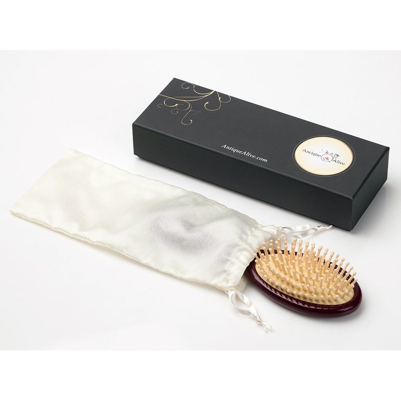 Antique Alive Mother of Pearl Inlay Art Parrot Bird Christmas Flower Luxury Oval Black Hair Brush Detangling Anti Static Scalp Massage Comb Wooden Handle Bristle Cushion Kids Girl Boy Gift Hairbrush