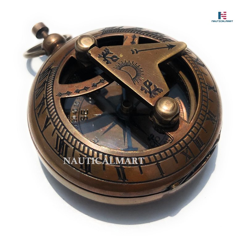 Antique Push Button Brass Sundial Compass Outdoor Navigation Directional Nautical Housewarming Gifts