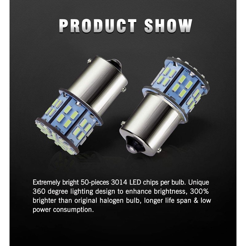 - 【ADVANTAGE】(Set of 20 bulbs)50-pieces extremely bright 3014 LED chips per bulb. Unique 360 degree lighting design to enhance brightness, 300% brighter than original halogen bulb, longer life span & low power consumption.