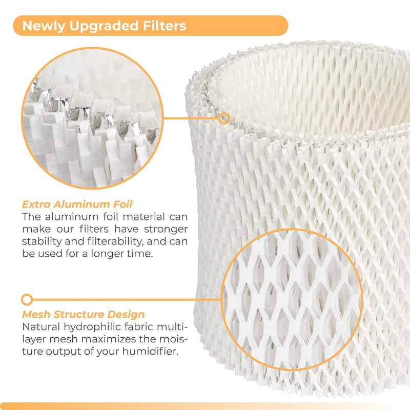 - 【HIGH QUALITY MATERIALS】Natural hydrophilic fabric multi-layer mesh maximizes the moisture output of your humidifier. And the newly upgraded aluminum foil material can make our filters have stronger stability and filterability, and can be used for a longer time.