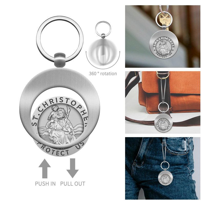 - Friendly reminder: For the stability of the Saint Christopher medal, it may be a little tight when pushing in and pulling out the St Christopher medal from the coin keychain storage holder. Please understand that this is normal.