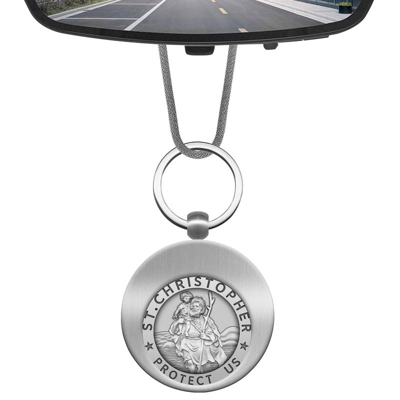 - Guard Your Faith and Happiness: "St. Christopher Protect Us" is engraved on the car rearview mirror Saint Christopher charms medal pendant. Its presence in the car serves as a reminder to drive safely and cautiously, creating a sense of mindfulness on the road. The Saint Christopher hanging ornament will always be with you, guard, bless and bring good luck whenever and wherever.