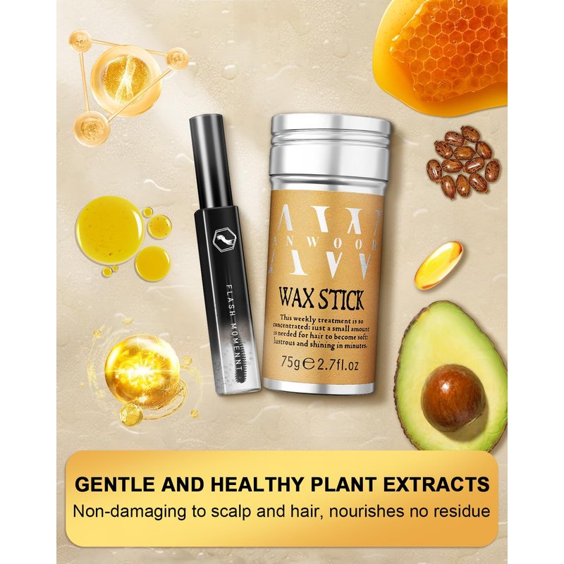 - Healthy Mild Plant Materials: Hair wax stick & hair stick are made of avocado oil, jojoba oil, vitamin and beeswax. hair brush 3pcs set is made of ABS sturdy material Carbon fiber and tungsten steel, suitable outdoor travel set