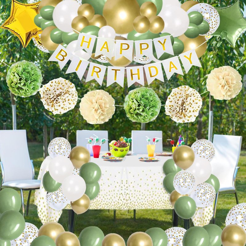 - [PREMIUM QUALITY MATERIAL]- The happy birthday banner is made of high quality card stock, wrinkle resistant and durable. Sturdy ribbon, twinkle star hanging decor. All balloons are thick and not easy to blow, non-toxic and odorless, safe to use. Sage green, vibrant colors, add to the party atmosphere. The high-quality birthday decorations can be carefully stored away and reused. Don't damage the wall.