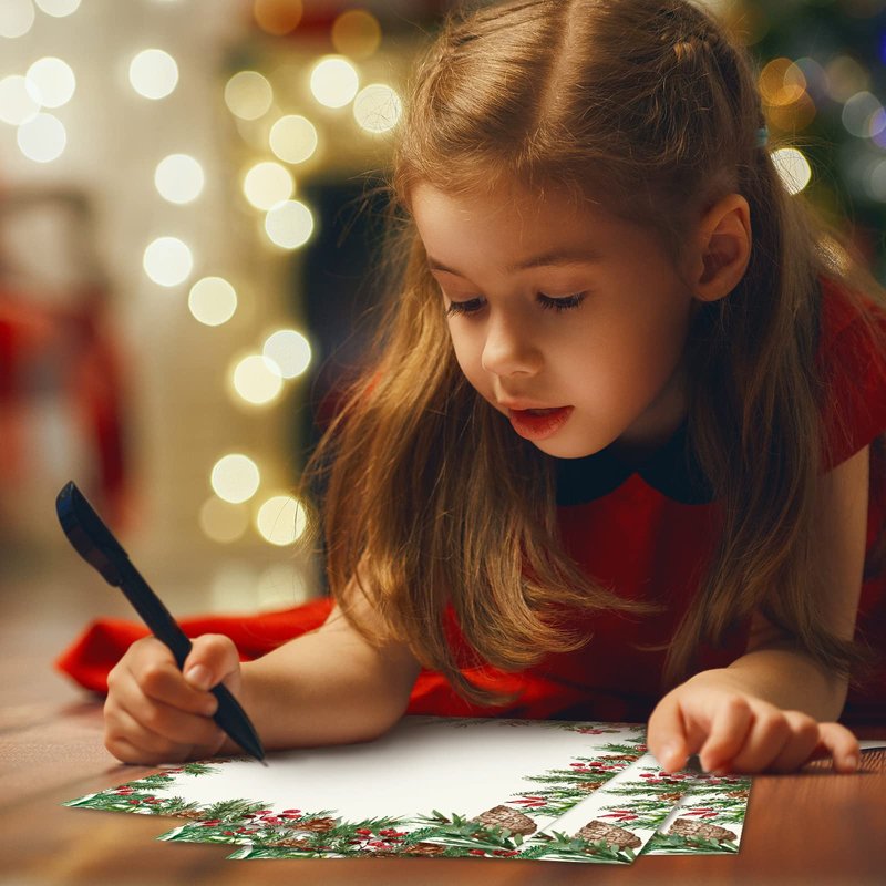 80 sheets Christmas letter paper with festive designs, sufficient quantities to write down your wishes and greetings to your family, friends and Santa.