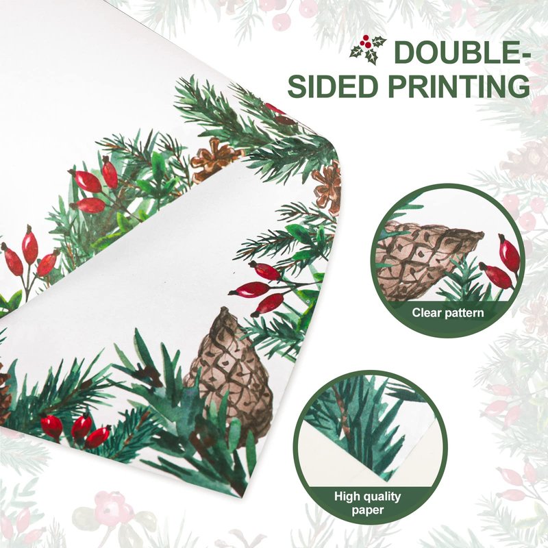 - FESTIVE DESIGNS: Patterned with pine, pine cone and red berries at 4 borders, rustic and delicate, great writing paper to give your warm greetings to your friends.