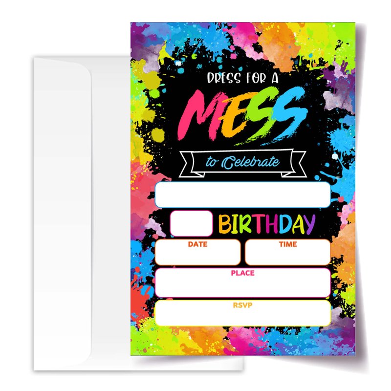 ANYEMW 4x6 Paint Birthday Invitations, Art Party Decorations, Glow Party Supplies, Art Birthday Party, Kids Birthday Invitations, 20 Cards with 20 Envelopes.(39)