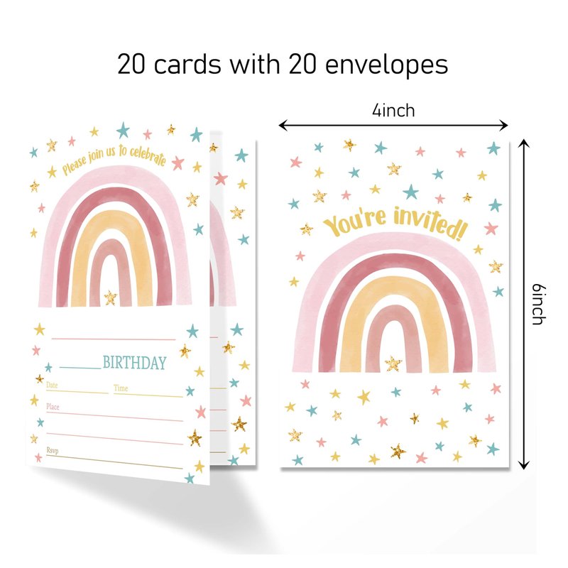 ANYEMW 4x6 Rainbow Birthday Invitations, Rainbow Party, Rainbow Party Decorations Favors Supplies, Birthday Party Invitations For Boys Girls, 20 Cards with 20 Envelopes.(64)