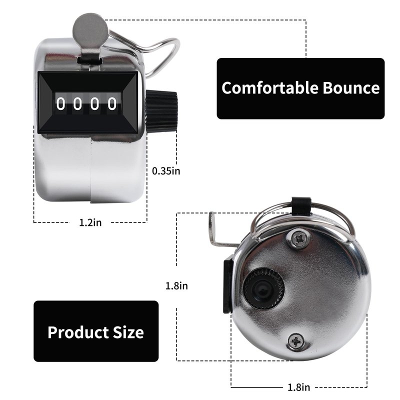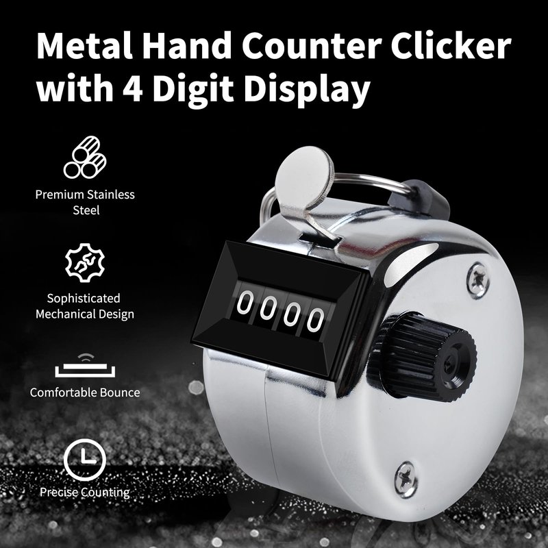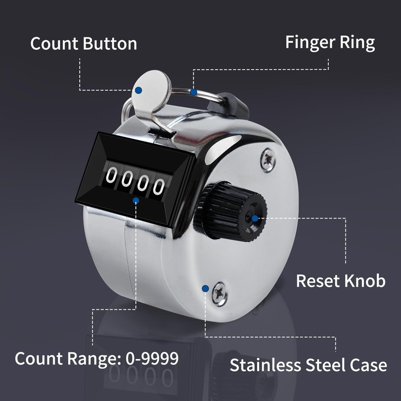 - Precise Counting - To ensure you have perfect control over the counting process, the counter has a sophisticated mechanical design that provides a slight audible feedback and a comfortable bounce with each press. Counts up to 9999 maximum.