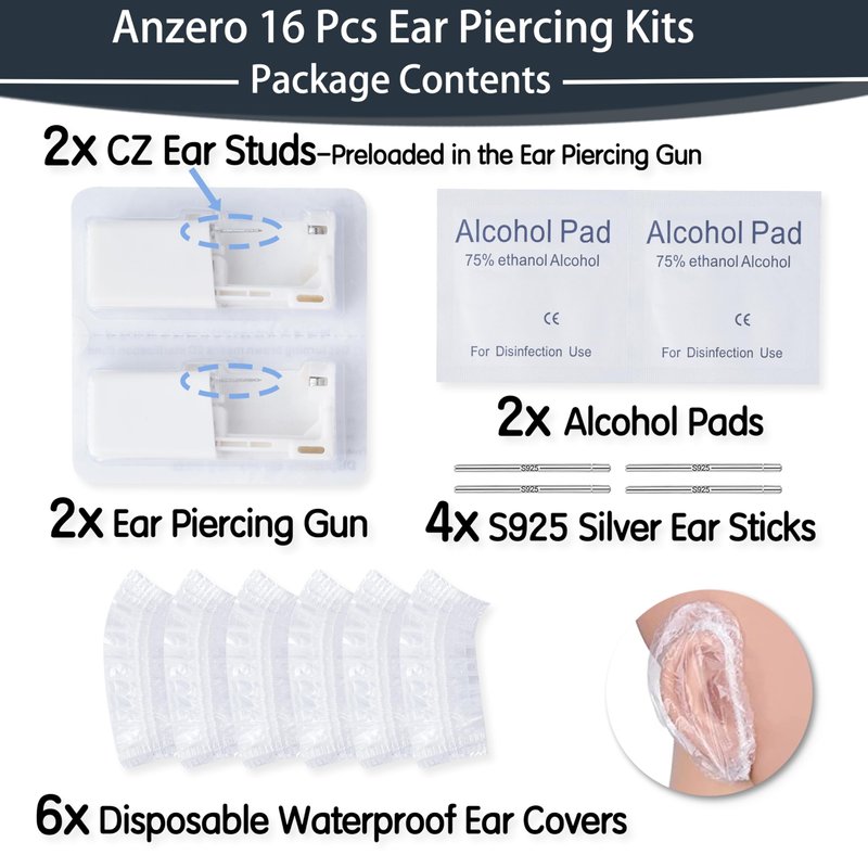 - 💎𝟏𝟔𝐏𝐜𝐬 𝐄𝐚𝐫 𝐏𝐢𝐞𝐫𝐜𝐢𝐧𝐠 𝐊𝐢𝐭 - You will receive 2 Pack Ear Piercing Gun, 2Pcs 20 Gauge Cubic Zirconia Ear Stud (𝐄𝐚𝐫 𝐒𝐭𝐮𝐝 𝐚𝐫𝐞 𝐏𝐫𝐞𝐥𝐨𝐚𝐝𝐞𝐝 𝐢𝐧 𝐭𝐡𝐞 𝐄𝐚𝐫 𝐏𝐢𝐞𝐫𝐜𝐢𝐧𝐠 𝐆𝐮𝐧), 4 Pcs S925 Ear Sticks, and 6 Pcs Disposable Waterproof Ear Covers, 2 Pcs Alcohol Pads.