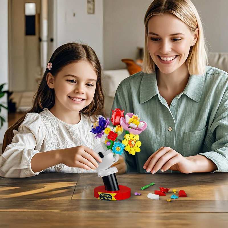 - ELEGANT ARTIFICIAL BOUQUET WITH STAND - The AobiKSEY Bouquets of Flowers Building Kit comes with 338 safe plastic pieces that can be easily build to create a beautiful and realistic flower. Ideal for home decorations and gifts for holidays like Christmas, these artificial flowers are easy to build and look well.