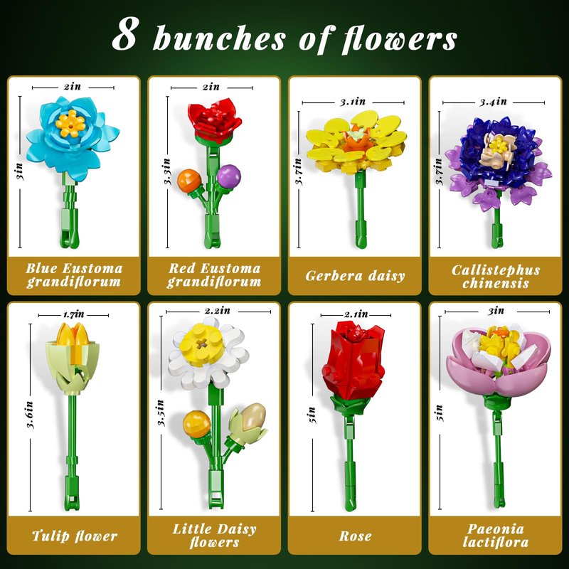 - EASY MAINTENANCE AND SAFETY FOR CHILDREN AND ADULTS - Difference with real plants, these Flower Building Kits don't require watering, sunlight, or fertilizer. We prioritize safety and quality for boys, girls and adults and ensure easy maintenance and long-lasting blooms.