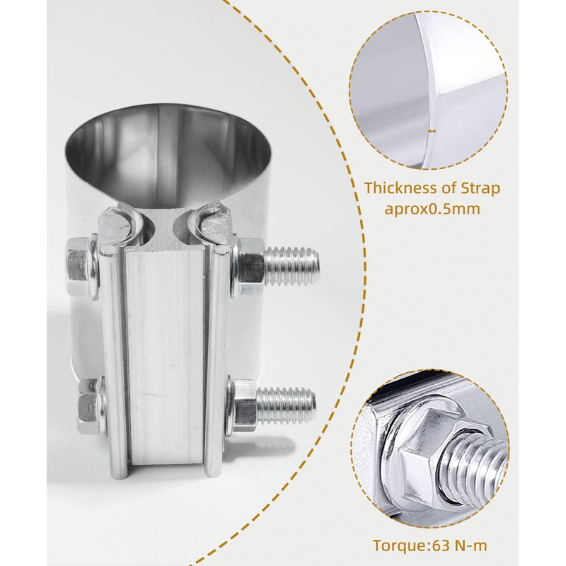 - [Various Specifications] Our 2.5-inch exhaust pipe clamp connects 2.5 "OD pipe to 2.5" OD pipe. In addition, we provide three different sizes to meet your needs. Please confirm the specification and size before purchasing.