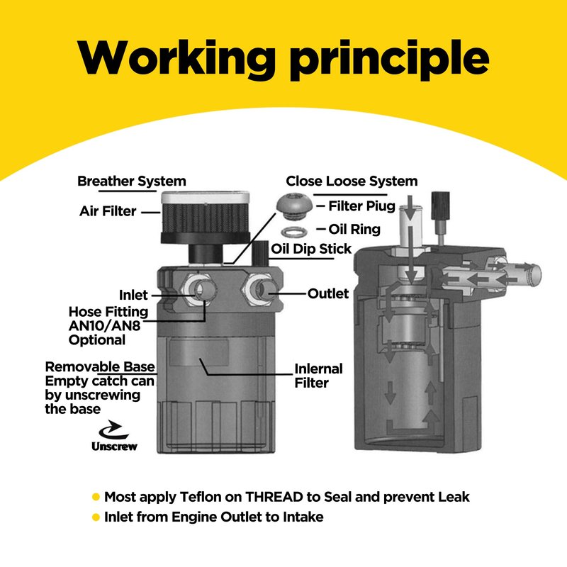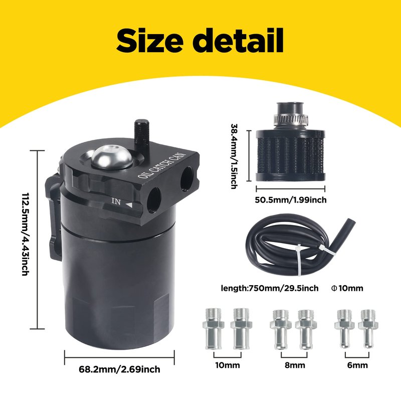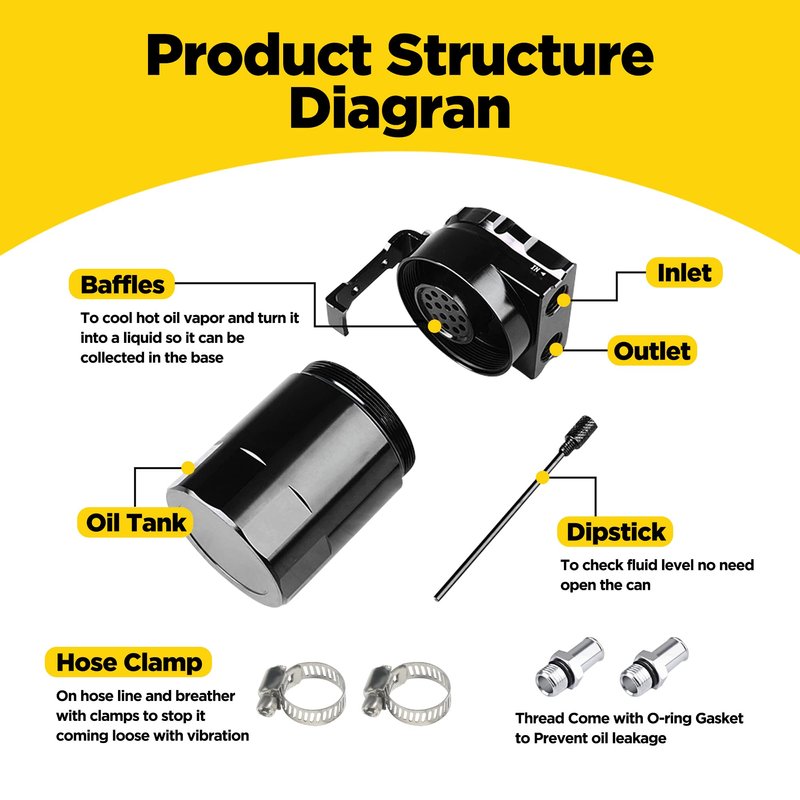 - [Keep the Engine Clean] After installing the oil collection tank, it can collect the oil and water in PCV/CCV, prevent carbon and sludge from accumulating in the intake system and engine, keep the engine clean and extend its life. The built-in dipstick is used to check the liquid level, and the removable bottom is used for drainage, making it reusable and easier to clean.