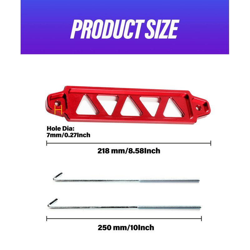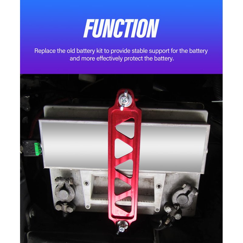 - [Function] The battery fixing device aims to ensure that the battery is firmly fixed, with multiple colors available for selection, adding a beautiful and clean appearance to the engine compartment.