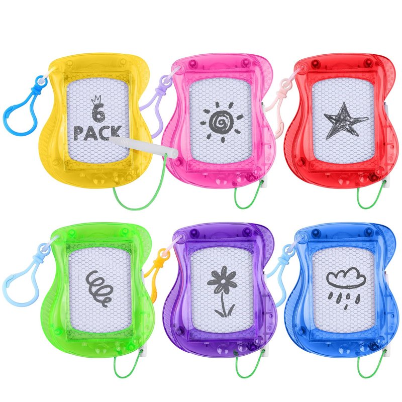 Aodaer 6 Pieces Mini Magnetic Drawing Board with Pen 4 Inch Backpack Keychain Clip Drawing Boards Erasable Doodle Board Sketch Pad Drawing Tablet for Birthday Gifts Car Trip Educational Toys