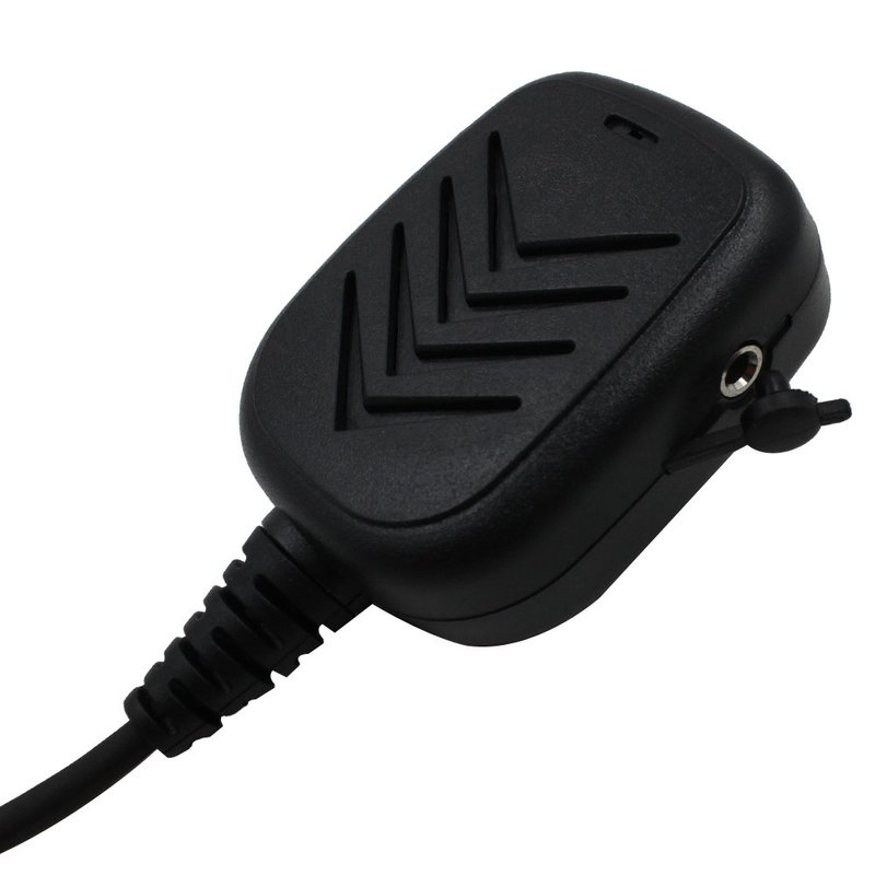 - Push-To-Talk button and microphone are located on the accessory for quick and easy use.