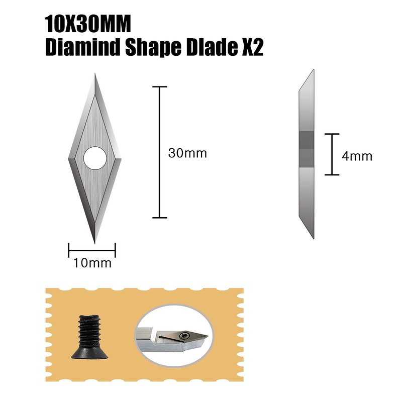 - 4 different carbide cutters satisfy all you demand:Square With Square(11*11mm),Diamond Shaped (10mm*30mm),2pcs Round (Ø12mm*2.5mm) and (Ø8.9mm*1.85mm)