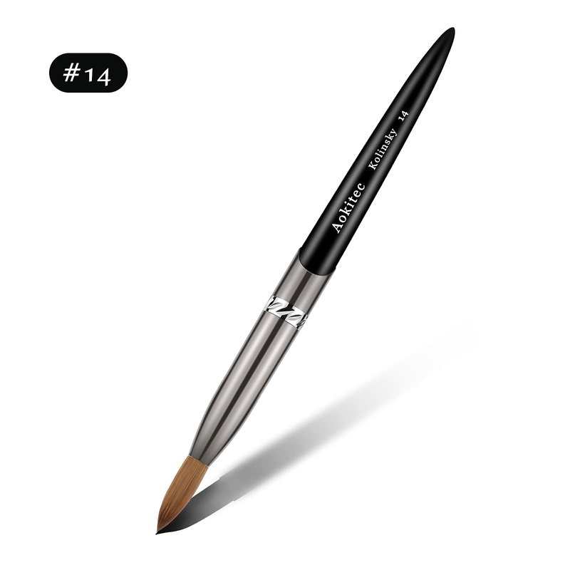 Aokitec Acrylic Nail Brush Size 14, Pure Kolinsky Hair Bristles Sturdy Wooden Handle Oval Crimped Sable Acrylic Brush Wood Nail Art Brush for Acrylic Powder Application Manicure Tool(Black)