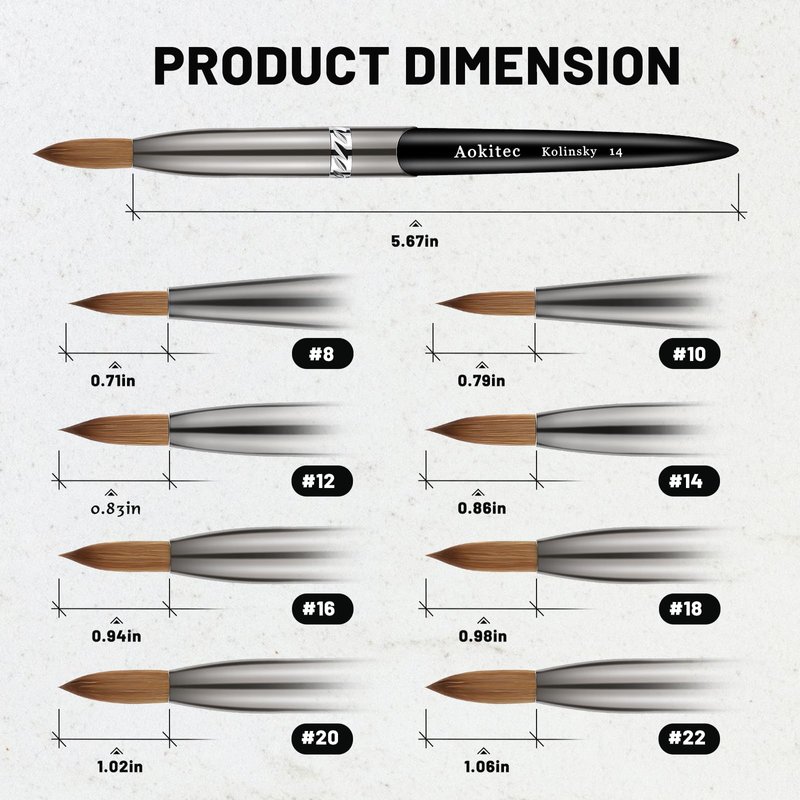 - 🥇【Acrylic Nail Brush】 Multiple sizes for multiple needs,such as nail extension, nail carving, Fine drawing on nail tips,holding to draw, smooth application, convenient for you to create 3D patterns, grids or flowers etc. The size conforms to international standards and is slightly larger than the general size.