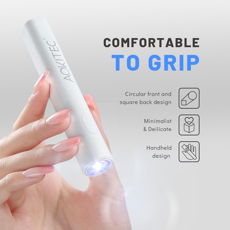 - 🪄 Sincerely Tips – Aokitec LED nail lamp can help your nail art dry quickly and efficiently without causing damage to your eyes or skin. If you have any questions about our portable handheld UV light for nails, please feel free to contact our customer service team, and we will try our best to solve them for you.