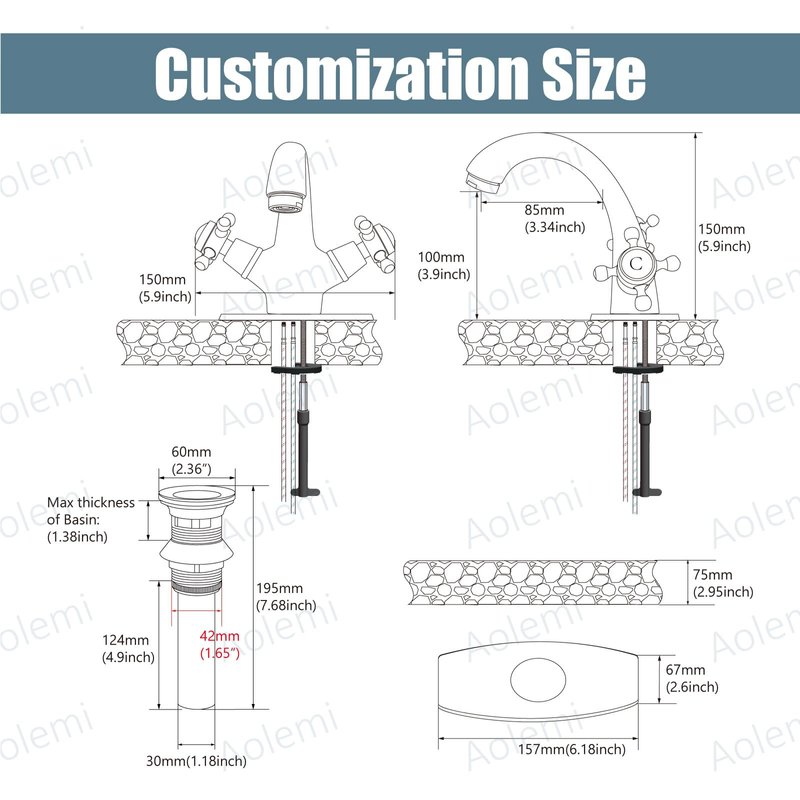 【Installation Hole Diameter 】Diameter of hole in sink should be 31mm to 42mm.Come with all mounting hardware,two 23inch cold and hot hose,cover plate and install instruction.