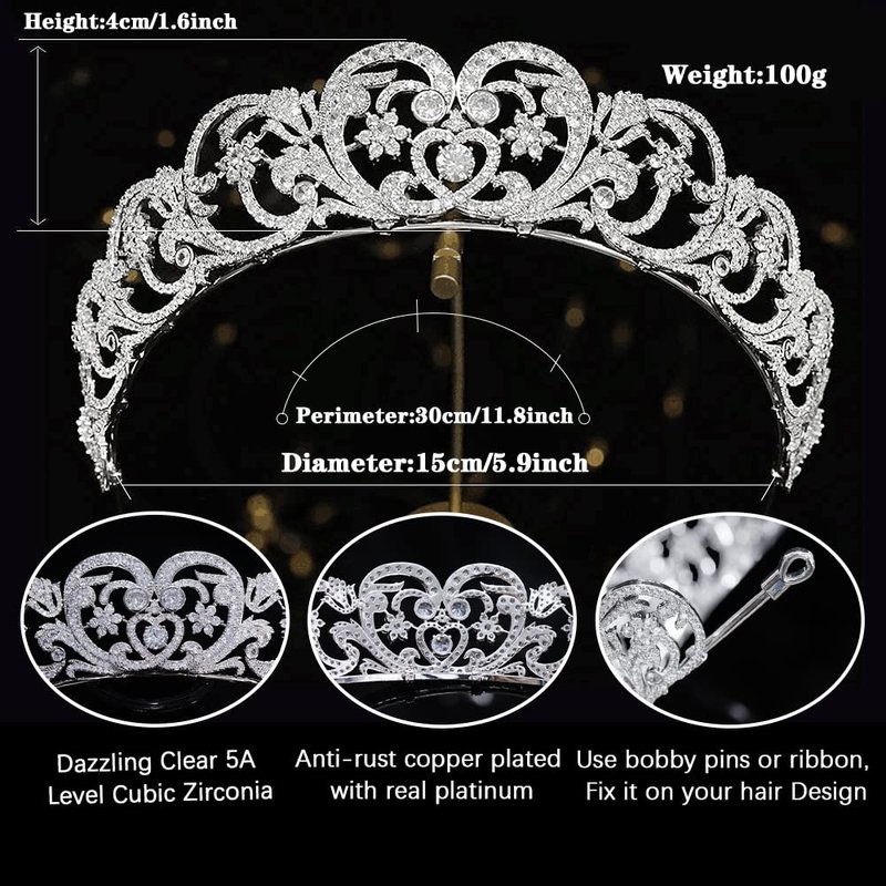 This Aoligrace Cubic Zircon crowns and tiaras is fit for women, girls, brides and bridesmaid. This wedding crown features a shinning cubic zirconias at the center that is accented with jeweled scrolls in an original design.