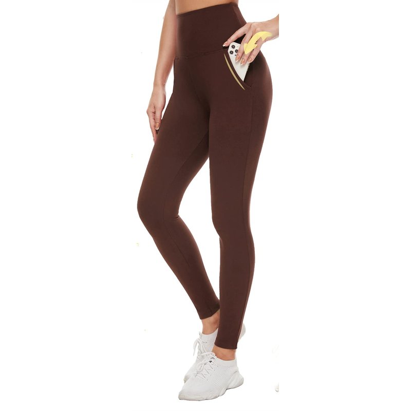 Aoliks Leggings with Pockets for Women - Yoga Pants with Pockets,Soft High Waist Tummy Control Non See Through Workout Pants Brown