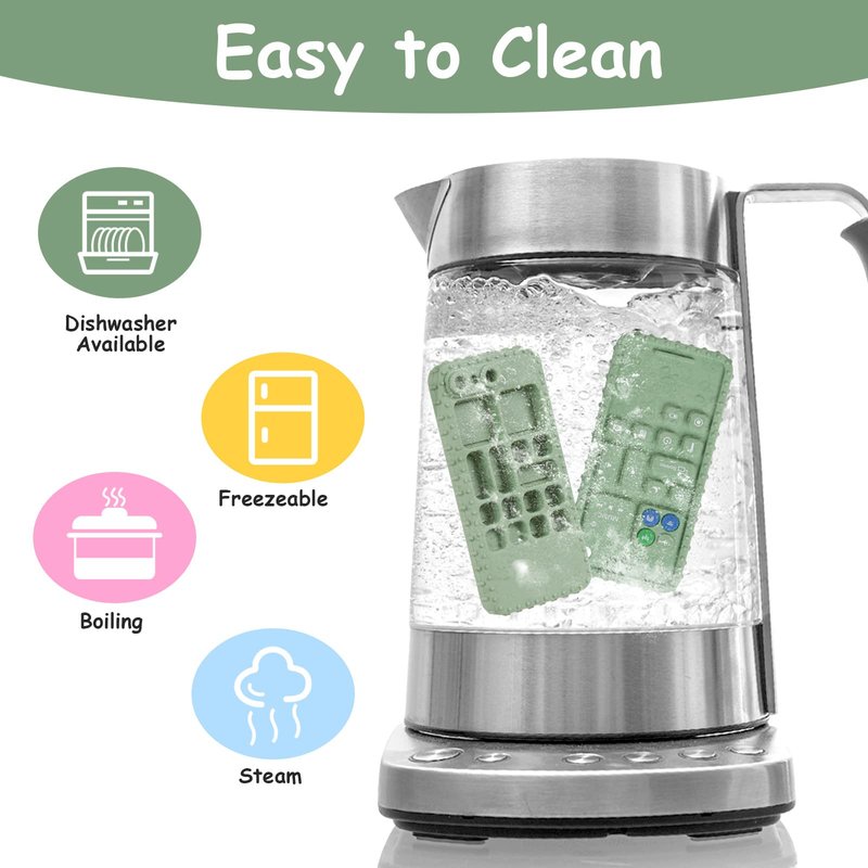 - 📱【Easy to Clean】The silicone baby teething toys are hand washable or dishwasher safe, and can be put in the freezer to freeze. There will be a little smell when you receive it, it is recommended to use boiling water (below 200°) or steam to clean the teething toy for the first time, the smell will disappear after 24 hours after cleaning.