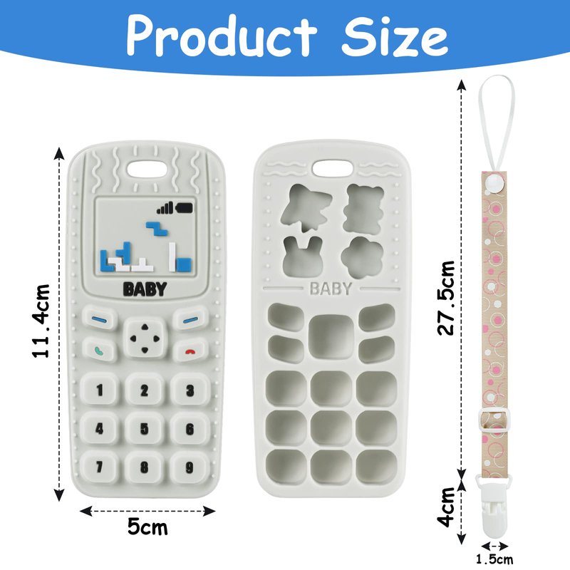💝Your baby will get 1 phone-shaped teethers and 1 pacifier clips in different colors.