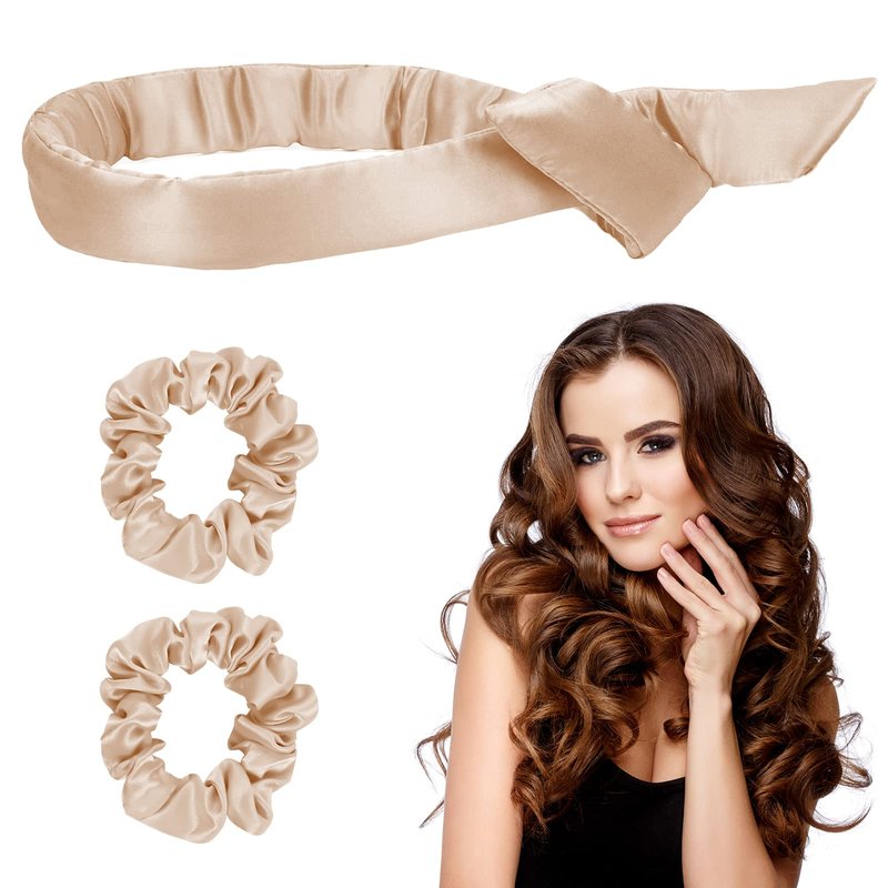 - 【Material】 The curling iron headband is made of pearl cotton, which is soft and comfortable and can be reused for a long time. The soft material allows the curling iron to change its shape at will and can be used as a fashionable hair tie. The set includes a curling band and two sleep ties, both covered in premium silky fabric.