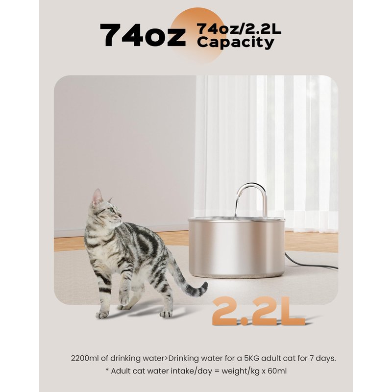 - 【74oz Water Capacity】74oz capacity, even if you go out for a week, you don't have to worry about your pets without water. This pet feeder continues to provide your pet with high -quality water sources, save your time, and help reduce trouble. You only need to add water every week to ensure the safety of pet drinking water.