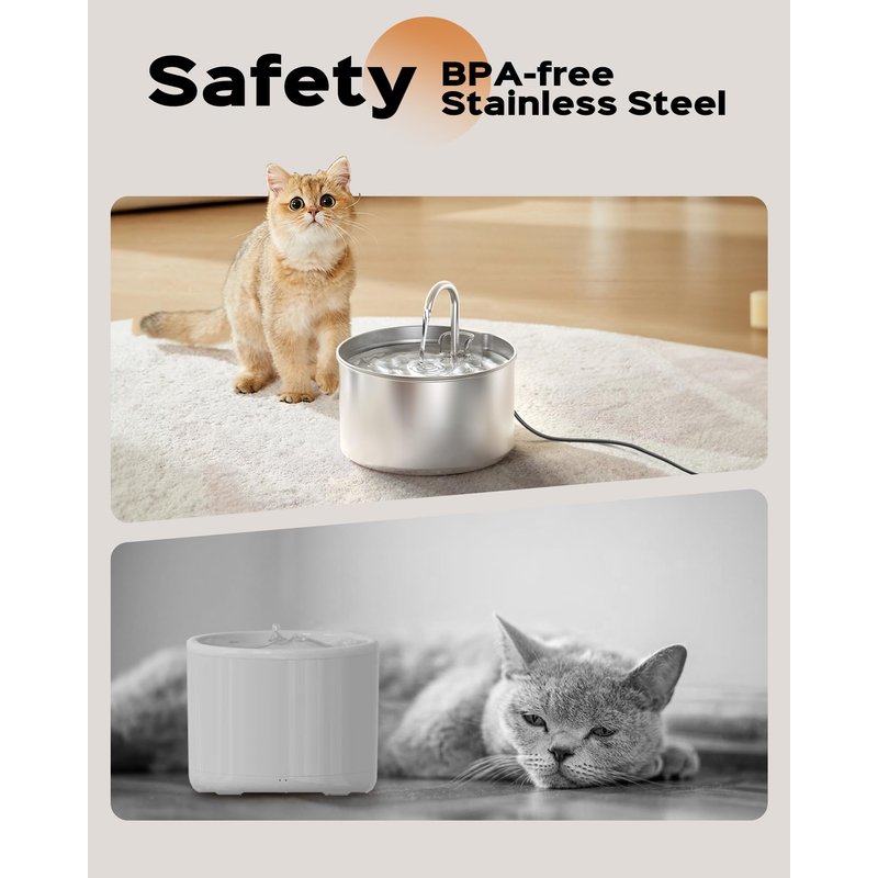 So we recommend that you use this stainless steel water fountain for your cat.