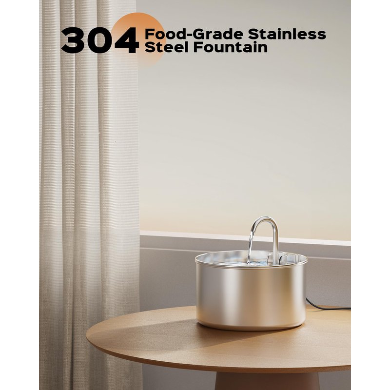 - 【304 Stainless Steel Material】Compared with plastic materials, the pet fountain made of stainless steel materials is more tough, better resistant to corrosion,longer service life, and no other material elements will penetrate into the water to ensure the safety of pet drinking water.