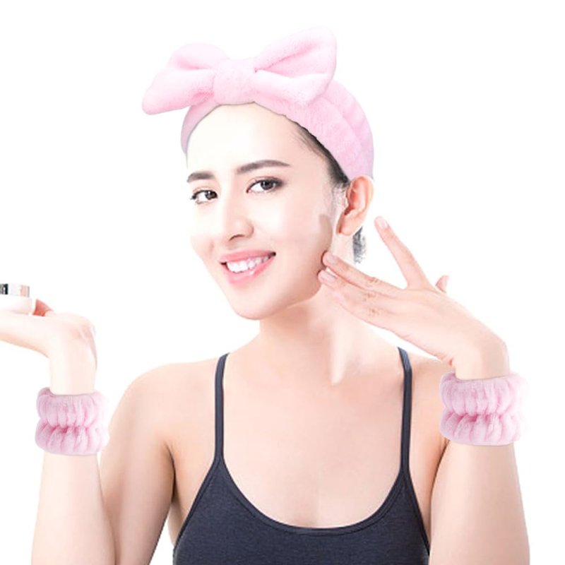 SPA Headbands for Washing Face Makeup Headbands with Bow Hair Band Women Facial Head Band Wrist Towel Wraps For Shower Face Mask