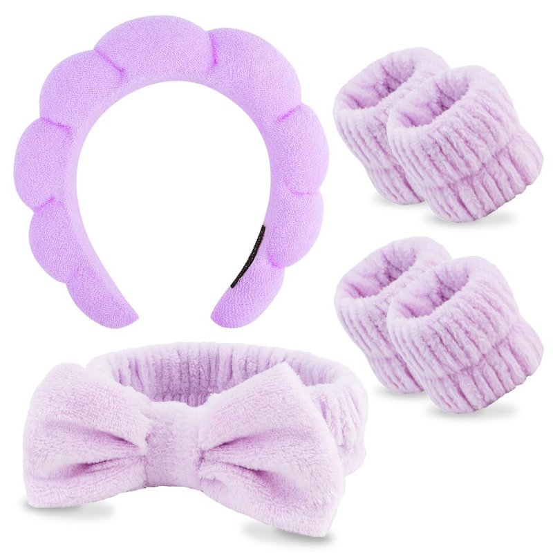 AOPRIE SPA Headbands for Washing Face Makeup Headbands with Bow Hair Band Women Facial Head Band Wrist Towel Wraps For Shower Face Mask Purple, 6 Pack