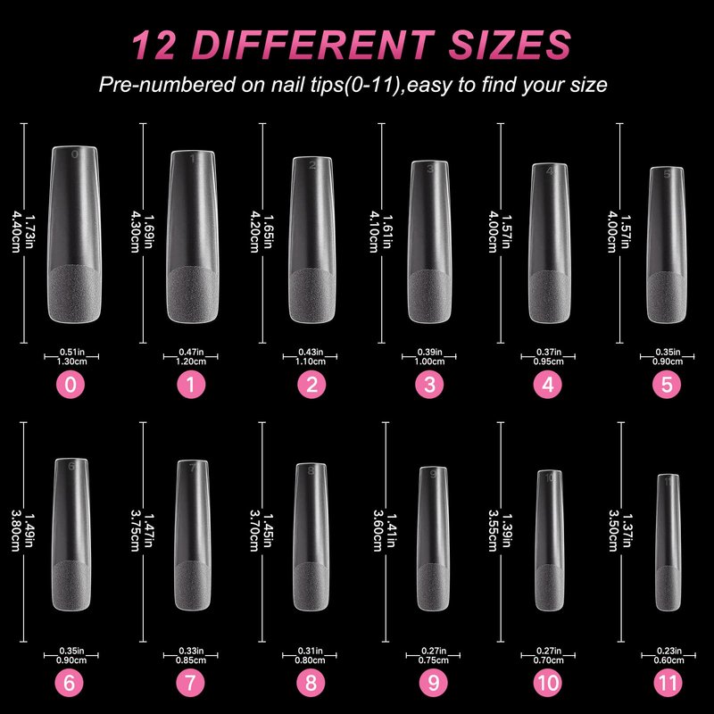 - 12 Different Sizes: Full cover acrylic nails has a total of 240PCS,Each size are numbered on the top,you can easily mark and track them, suitable for different nails size requirements.