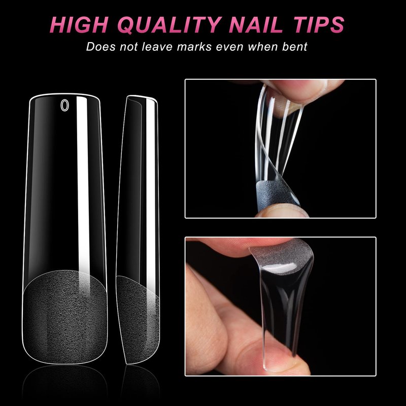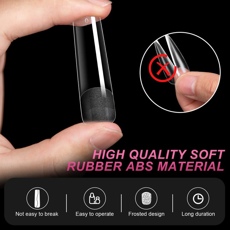 - QUALITY SOFT ABS MATERIAL NAIL TIPS- AOREAM Tapered square nail tips is made of high-quality soft ABS material,which is soft, has good air permeability and extensibility, and is not easy to break. Full cover nail tips will not deform and no crease when pressed,and soft gel full cover nails is easier to fit with our nail surface without discomfort, so that your manicure will always be perfect ; No odor, no allergies, give you a better DIY manicure experience.