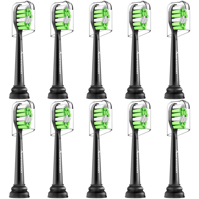 Aoremon Replacement Heads for Philips Sonicare Electric Toothbrush -Compatible with All Sonicare Click-on Toothbrush Handles, Black, Pack of 10