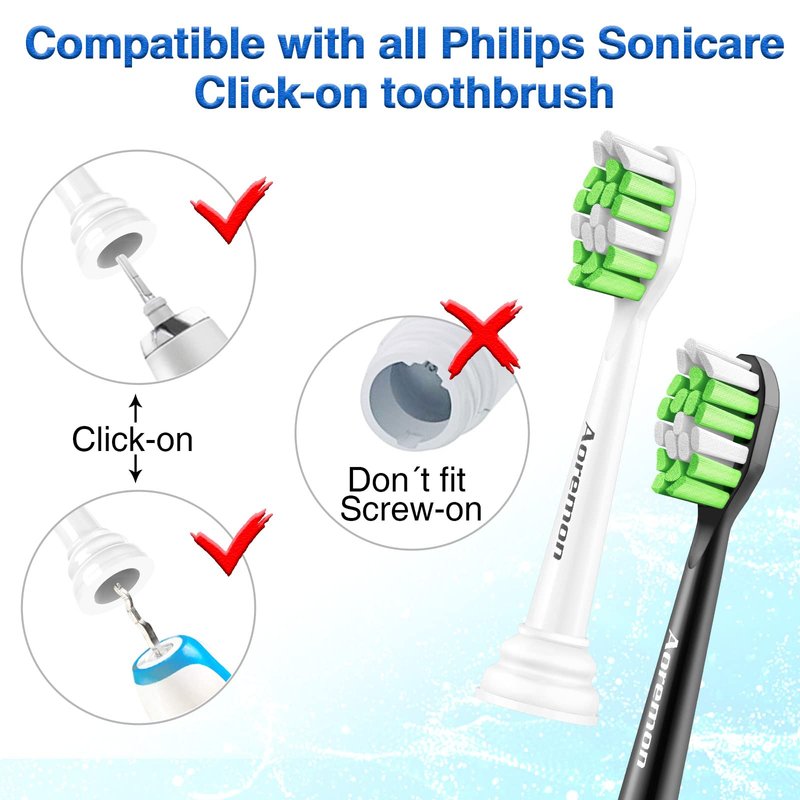 - 【Click-on Design for Wide Compatible】Aoremon toothbrush heads fits perfectly with Philips DiamondClean, DiamondClean Smart, 2 Series Plaque Control, 3 Series Gum Health, DailyClean, EasyClean, FlexCare Platinum, HealthyWhite, ProtectiveClean, PowerUp and other Snap-on Sonicare electric toothbrushes (A complete list of compatible with Philips models in the description below)