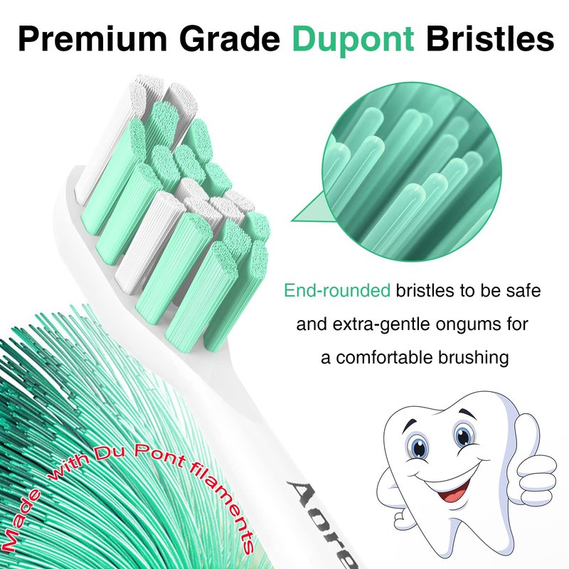 Aoremon replacement toothbrush heads are made with premium grade DuPont bristles, which are UV-sterilized for added safety, has been recognized as the apex of quality in the oral care synthetic filament industry