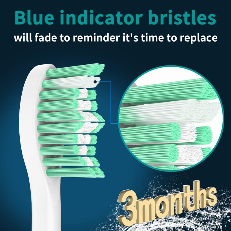 - 🦷【Reminder Bristles Let You Get Whiter Teeth】 Preeminent PP material ensures that the replacement brush heads for Sonicare never break and the bristles never fall off, and brush heads become less effective after 3 months of use, but we'll remind you before this appearance occurs, just monitor the blue replacement bristles, the Indicator bristles will fade in color to remind you it's time to replace your toothbrush heads, let you get an effective clean all the time.