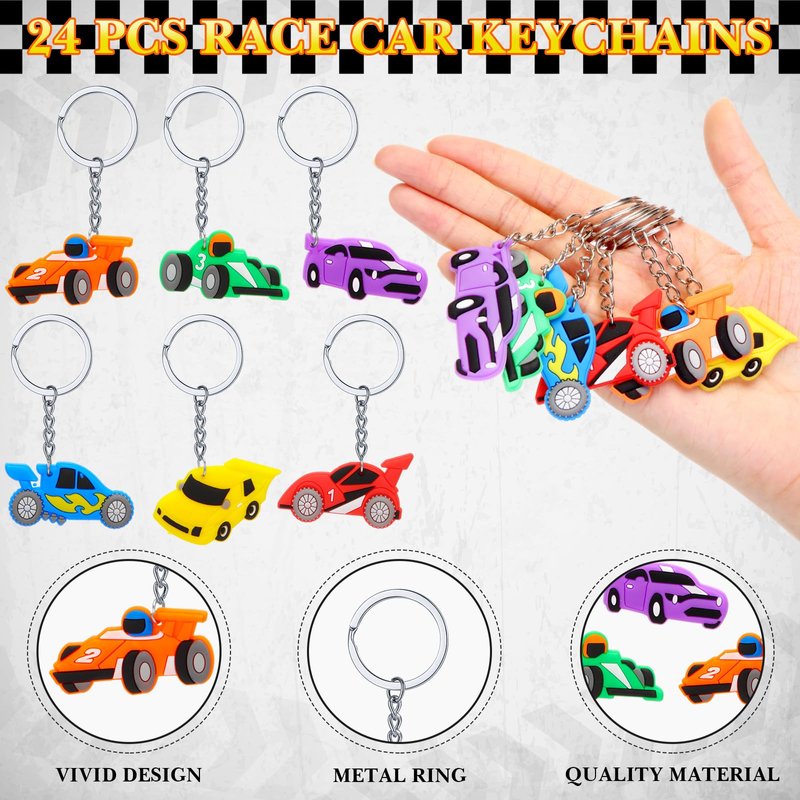 - Race Car Party Favors: you will get 24 pieces of race cars wristbands bracelets with 24 pieces of racing party keychains, enough quantity and a nice combination will meet your daily use and race car birthday party needs, filling racing party favor bags and share them with your friends