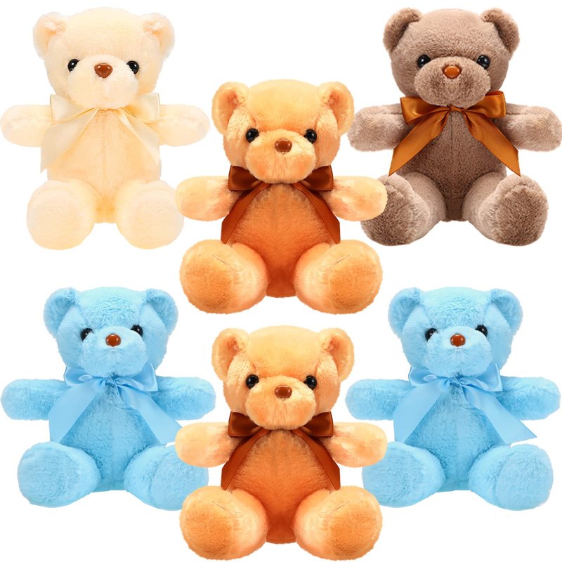 - You Will Receive: the package includes 6 pieces bear stuffed animals mainly in beige, light brown, dark brown, blue, enough quantity to meet your daily use and decorative needs; Each bear measures approx. 14 inches/ 35 cm in height, proper size for you to hug in arms, also suitable for sending as a gift