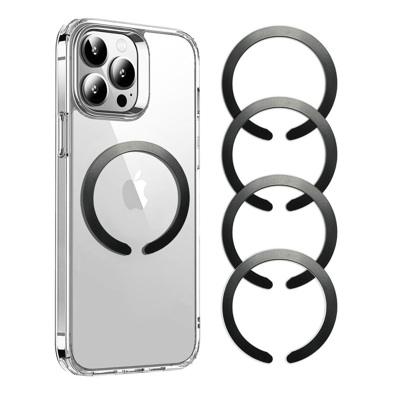 Enhance your phone’s magnetic strength with our ultra-thin ring. This ring improves compatibility with wireless charging systems and magnetic accessories, adding minimal weight for a sleek, functional solution. Basic Information: Pack size: 4-pack (Black) Thickness: 0.016 inches each (0.4 mm) Weight: 0.106 oz (3 g) Compatibility: Compatible with iPhone 16/15/14 series, iPhone 13/12/11 series, iPhone X/XS/8 Plus, Samsung Galaxy S8-S22, Note8-Note20, and other Qi-enabled Android devices. Fits non-magnetic devices like Kindles. Cooling and Mischarge Prevention Design: reduced induction, heat, & misrecognition charging errors