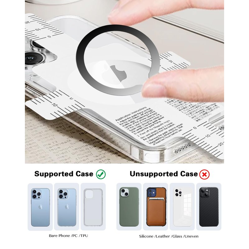 - 【Effortless Install】 The alignment card ensures a perfect fit for maximum charging with the magsafe ring. Clean the smooth surface before use. Note: Not compatible with silicone, leather, glass, or uneven cases.It is recommended to stick it on the phone case rather than directly on the phone surface.