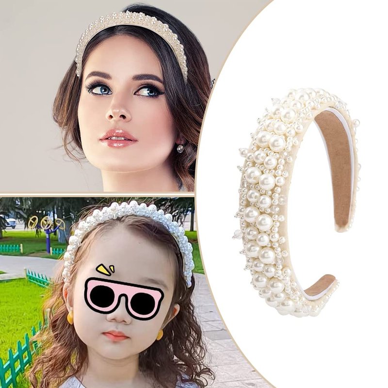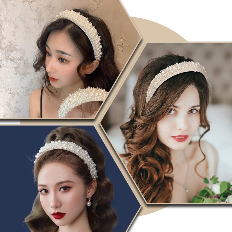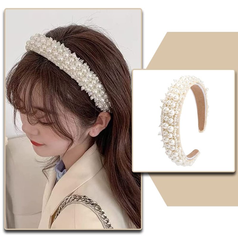 AOTISBAO Headband Imitation Pearl Hair Band Wide Non-slip Hair Hoop for Women and Girls Daily Wear and Hairstyle Decoration