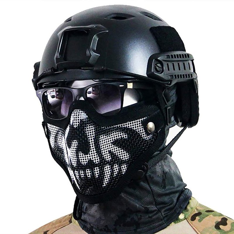 AOUTACC Airsoft Half Face Mask Steel Mesh and Goggles Set, Skull Tactical Masks Protection Gear for Paintball BBS CS Nerf Game Cosplay Halloween Costume Accessories (Black Skull)
