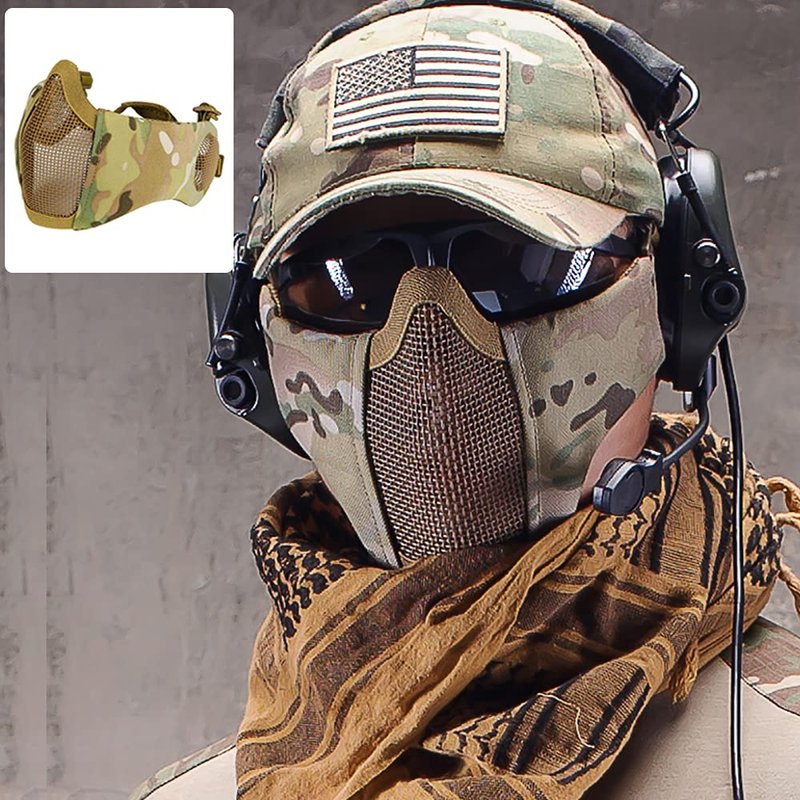 - 👉The half mask is compatible with most eyes protection glasses/goggles and perfect combination with the tactical helmet to give the whole head full protection.